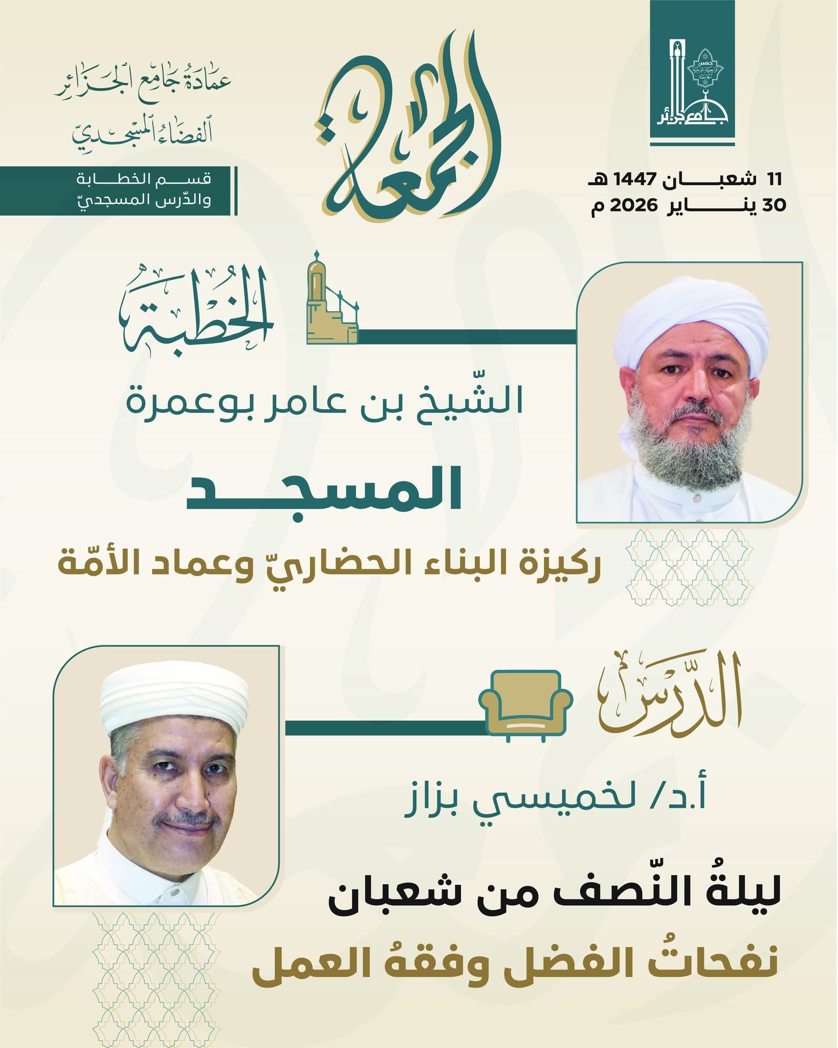 مجتمع و ثقافة إنطلاق فعاليات معرض الربيع البليدي بمشاركة نحو 70 عارضا18 avril، 2026قالمة: توقيف 11 شخصا في قضية سرقة بنك10 avril، 2026لالة فاطمة نسومر: نموذج المرأة الجزائرية المقاومة” محور يوم دراسي2 avril، 2026تعيين مدير جديد بوكالة بير خادم للضمان الاجتماعي يعزز تطلعات تحسين الأداء1 avril، 2026برقية مستعجلة موجهة للولاة29 mars، 2026 إنطلاق فعاليات معرض الربيع البليدي بمشاركة نحو 70 عارضا 18 avril، 2026 قالمة: توقيف 11 شخصا في قضية سرقة بنك 10 avril، 2026 لالة فاطمة نسومر: نموذج المرأة الجزائرية المقاومة” محور يوم دراسي 2 avril، 2026 تعيين مدير جديد بوكالة بير خادم للضمان الاجتماعي يعزز تطلعات تحسين الأداء 1 avril، 2026 برقية مستعجلة موجهة للولاة 29 mars، 2026 بسبب سوء الأحوال الجوية تعليق الدراسة بتندوف 1 mars، 2026 وزارة التربية تشدد على الانضباط والحد من الغيابات غير المبررة في المؤسسات التعليمية 25 février، 2026 توقيف 3 أشخاص سطوا على محل مجوهرات بالرويبة 23 février، 2026 4 وفيات في حوادث المرور و4422 تدخلًا للحماية المدنية خلال 48 ساعة 21 février، 2026 وفاة شاب بعد سقوطه من الطابق العاشر ببوعينان 12 février، 2026 الخطر القلبي الوعائي محور يوم طبي بالمركز الاستشفائي TOT بالبليدة 12 février، 2026 مسابقة توظيف الأساتذة.. بيان هام من وزارة التربية 10 février، 2026 امتلاء سد بني هارون.. بيان تحذيري هام 9 février، 2026 الجزائر تطلق مناورة كبرى لمحاكاة زلزال بقوة 6.7 درجات منذ 24 ساعة 8 février، 2026 نهضة الأمة تبدأ بالمسجد.. ونفحات شعبان المباركة 30 janvier، 2026 قافلة شعراء من الضفتين الجزائر وإيطاليا في لقاء شعري وفني متميز 15 janvier، 2026